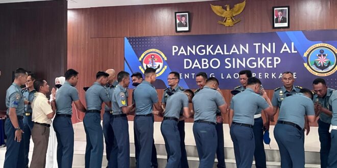 TNI AL, Dabo Singkep– Pangkalan TNI AL (Lanal) Dabo Singkep menggelar kegiatan Halal Bihalal bersama seluruh personel dalam suasana sederhana namun penuh hikmat dan kekeluargaan, bertempat di Gedung Diponegoro Lanal Dabo Singkep, Senin (30/03/2026).