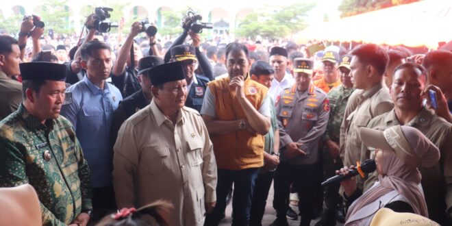 (Puspen TNI) Panglima TNI Jenderal TNI Agus Subiyanto mendampingi Presiden Republik Indonesia Prabowo Subianto dalam kunjungan kerja ke wilayah terdampak banjir di Kabupaten Aceh Tamiang, Jumat (12/12/2025). Kunjungan ini dilakukan untuk memastikan percepatan penanganan bencana, pemulihan layanan dasar, serta penyaluran bantuan bagi masyarakat yang terdampak banjir bandang.