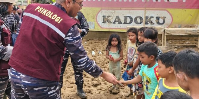 TNI AL, Belawan- Satgas Kodaeral I menghadirkan Tim Psikologi TNI AL dari Surabaya untuk memberikan pendampingan pemulihan trauma bagi korban bencana, khususnya anak-anak yang terdampak banjir di Aceh Tamiang, Jumat (12/12/2025).