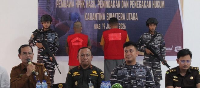 TNI AL, Nias Selatan- Pangkalan TNI Angkatan Laut (Lanal) Nias secara resmi melimpahkan berkas perkara dugaan tindak pidana pelanggaran karantina hewan kepada Balai Karantina Hewan, Ikan, dan Tumbuhan Sumatera Utara, Senin (19/1/2026).
