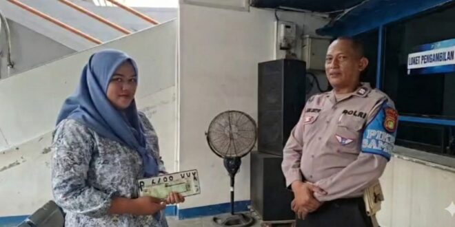 Salah satu warga menyampaikan pengalamannya saat mengurus administrasi kendaraan. “Pelayanan untuk pengurusan STNK maupun pelat nomor di sini sangat ramah, cepat, dan baik. Terima kasih,” ujarnya.