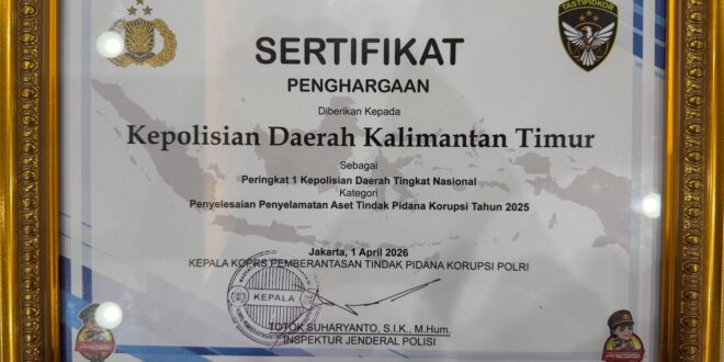 Dalam forum strategis tersebut, Polda Kaltim berhasil meraih peringkat pertama tingkat nasional pada kategori penyelesaian penyelamatan aset tindak pidana korupsi Tahun 2025 sebesar Rp76.241.914.668. Capaian ini menjadi indikator keberhasilan dalam optimalisasi penanganan perkara korupsi, khususnya dalam mengembalikan kerugian negara melalui proses hukum yang profesional dan akuntabel.
